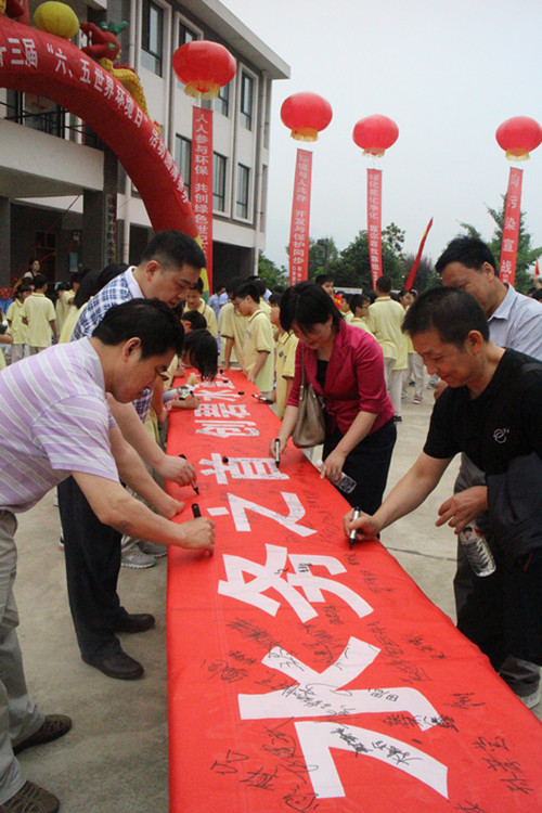 今年世界环境日活动中国主题为“向污染宣战”。活动现场,农工党员们发放绿色消费宣传册,在 “向污染宣战”的画报上签名,宣传介绍环保知识;还参观污水处理现场,亲自操作设备,体验污水处理的过程。