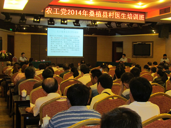 7月8日,应农工党中央、农工党湖南省委的要求,并在他们的大力指导和支持下,由农工党张家界市委组织的“农工党2014年桑植县村医生培训班”在新天大酒店举行,培训前进行了简短的开班仪式,桑植县卫生局副局长刘国华代表县卫生局致欢迎词,并对农工党对桑植县农村卫生事业发展作出的无私援助表示衷心感谢;农工党市委主委、市政协副主席覃仕斌作了讲话。