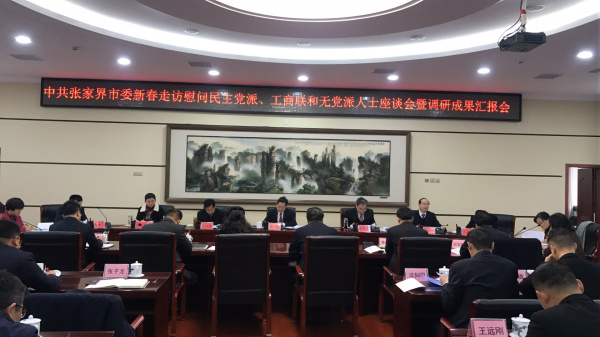2月11日,新春上班第一天,中共张家界市委书记、市人大常委会主任虢正贵率领“四大家”主要领导走访慰问民主党派、工商联和无党派人士,并召开座谈会听取参政议政调研成果专题汇报。