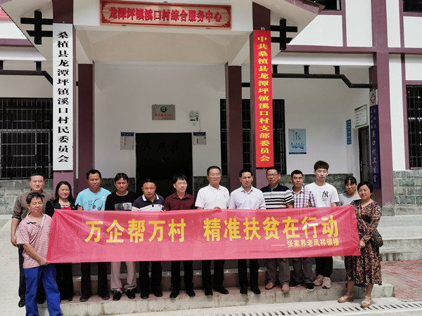 在溪口村村部,举行了简短的捐赠仪式,张家界市老凤祥银楼董事长陈金华为该村产业发展捐赠了十万元资金,为贫困村长效稳固脱贫夯实产业基础。张元次对老凤祥银楼企业担当作为积极参与“万企帮万村”精准扶贫行动合力打赢脱贫攻坚战表示了肯定与感谢。