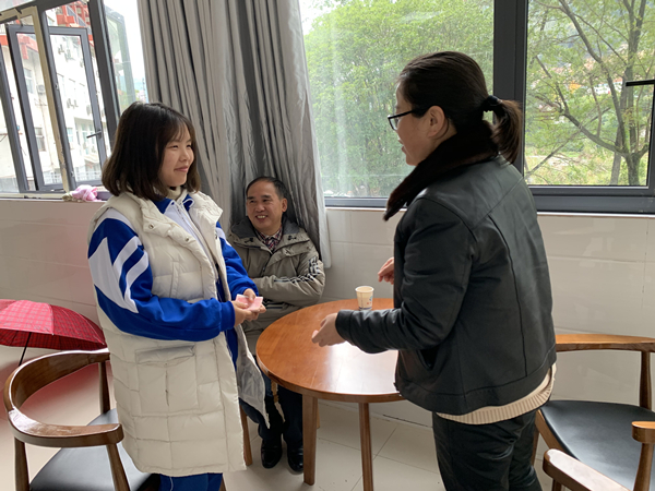 11月27日,农工党武陵源支委副主委李海英、卓尚辉一行走访区一中高二学生张慧茹,送去1000元助学金,并一起亲切座谈。