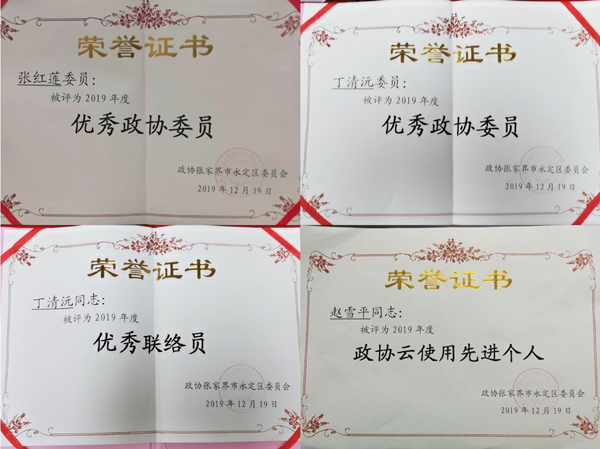 农工党党员丁清沅、张红莲、赵雪平分别被评为优秀政协委员、优秀联络员及政协云使用先进个人。