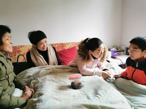 1月16日,农工党武陵源支委会主委何岚组织部分党员到中湖乡檀木岗村张家幸、赵芊芊两名学生家走访,为他们每人送去一千元助学金。