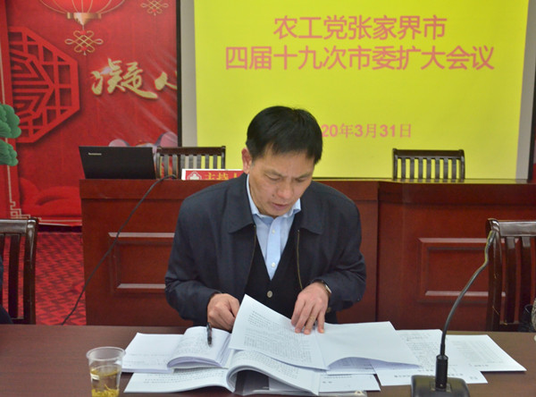 3月31日,农工党张家界市委会召开四届十九次市委扩大会议,市委会委员、各支委会主委及相关人员参加,张家界市政协副主席、农工党张家界市委会主委覃仕斌主持并讲话。