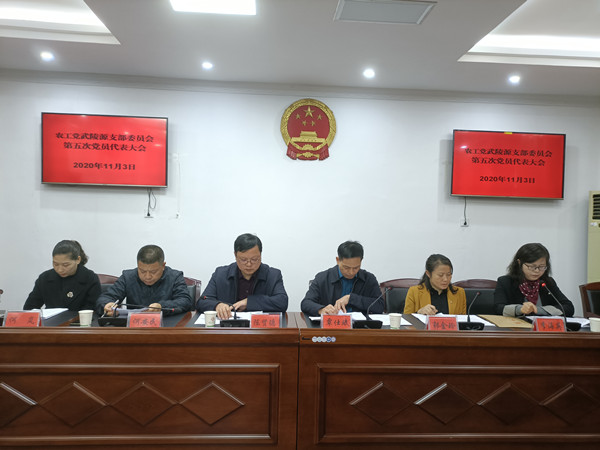 高磊代表民主党派致贺词;何岚代表第四届支部委员会作了《凝心聚力 固垒强基 为武陵源区经济社会发展做贡献》的工作报告;郭金玲代表农工党张家界市委会宣读有关换届工作批复文件;会议选举产生了以何岚同志为主委,李海英、卓尚辉、杨新慧同志为副主委,肖扬、全中伟、王婧同志为委员的农工党武陵源支部委员会新一届班子;何岚代表农工党武陵源第五届支部委员会新当选领导班子作了表态发言。