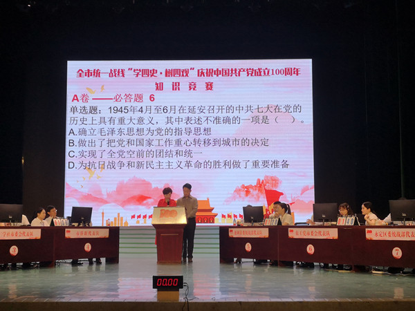 6月22日,中共张家界市委统战部举办全市统一战线“学四史·树四观”庆祝中国共产党成立100周年知识竞赛活动,中共市委常委、市委统战部部长田华玉出席并讲话。农工党张家界市委会选派3名党员组队参赛荣获“二等奖”。