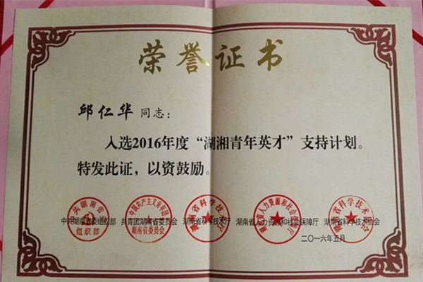 为认真贯彻落实党的十八大及十八届三中、四中、五中全会精神,加快湖南省优秀青年人才培养,提升湖南创新、创业人才竞争力,激励全省广大青年为促进“三量齐升”、推进“四化两型”、全面建成小康社会发挥生力军作用,经湖南省委人才工作领导小组同意,在全省开展“湖湘青年英才”支持计划。经过评审委员会资格审查、专家评委评审、网络公示,湖南省“湖湘青年英才”支持计划评审委员会综合公示和现场考察情况,确定了“湖湘青年英才”支持计划人选。农工党湖南大学基层委员会副主委邱仁华同志入选了该支持计划。