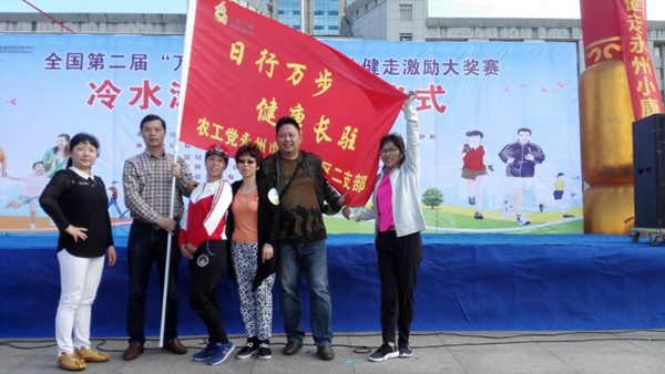 5月4日上午,全国第二届“万步有约”职业人群健走激励大奖赛冷水滩区启动仪式在区政府广场顺利举行。农工党永州市冷水滩区二支部主委王美玲带领支部党员参加了此次盛会。