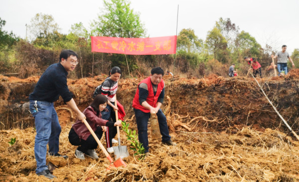 农工党冷水滩区一支部党员参加植树扶贫活动