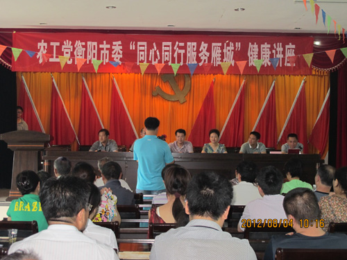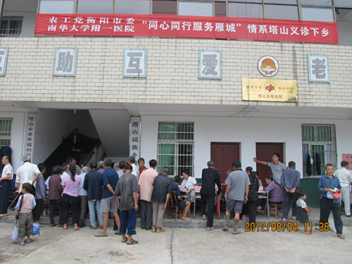 8月4日,根据省委统战部“同心工程”和市委统战部“同心同行·百名专家情动衡州”活动要求,农工党衡阳市委组织南华大学附一医院、附二医院、市第一人民医院、市第三人民医院、市第一精神病院的农工党员医疗专家,放弃休息时间,赴衡阳市唯一的少数民族乡——常宁市塔山乡,为瑶族同胞开展义诊下乡活动。农工党衡阳市委主委、市物价局副局长许云生,常宁市副市长黎才发等亲临活动现场指导。