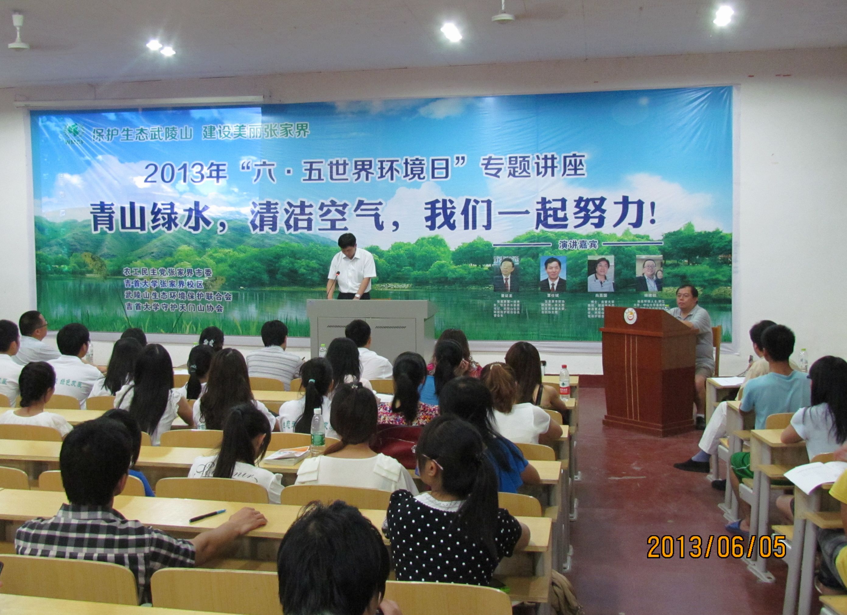 6月5日晚上,农工党张家界市委、吉首大学(张家界校区)、武陵山生态环境保护联合会和吉首大学守护天门山协会携手在吉首大学张家界校区举办了主题为“青山绿水,清洁空气,我们一起努力!”的专题讲座。