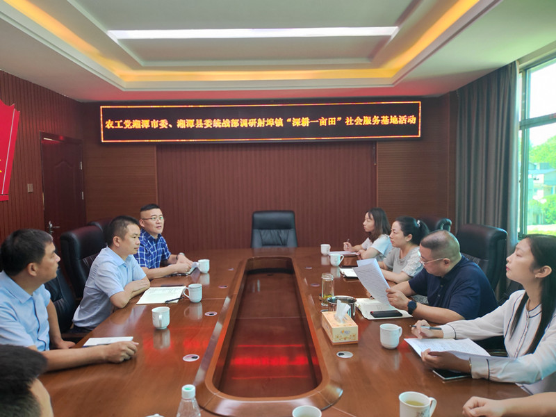 9月6日农工党湘潭市委会和中共湘潭县委统战部对射埠镇“深耕一亩田”农工党中央社会服务基地开展调研座谈活动。中共湘潭县委常委、统战部部长胡明伟,农工党湘潭市委会专职副主委姚宏,“深耕一亩田”农工党中央社会服务基地负责人邓述东等参加调研。